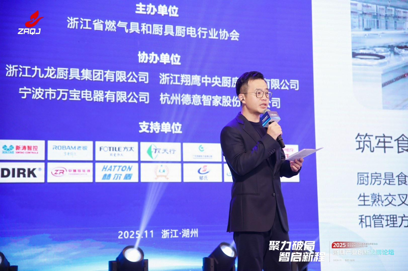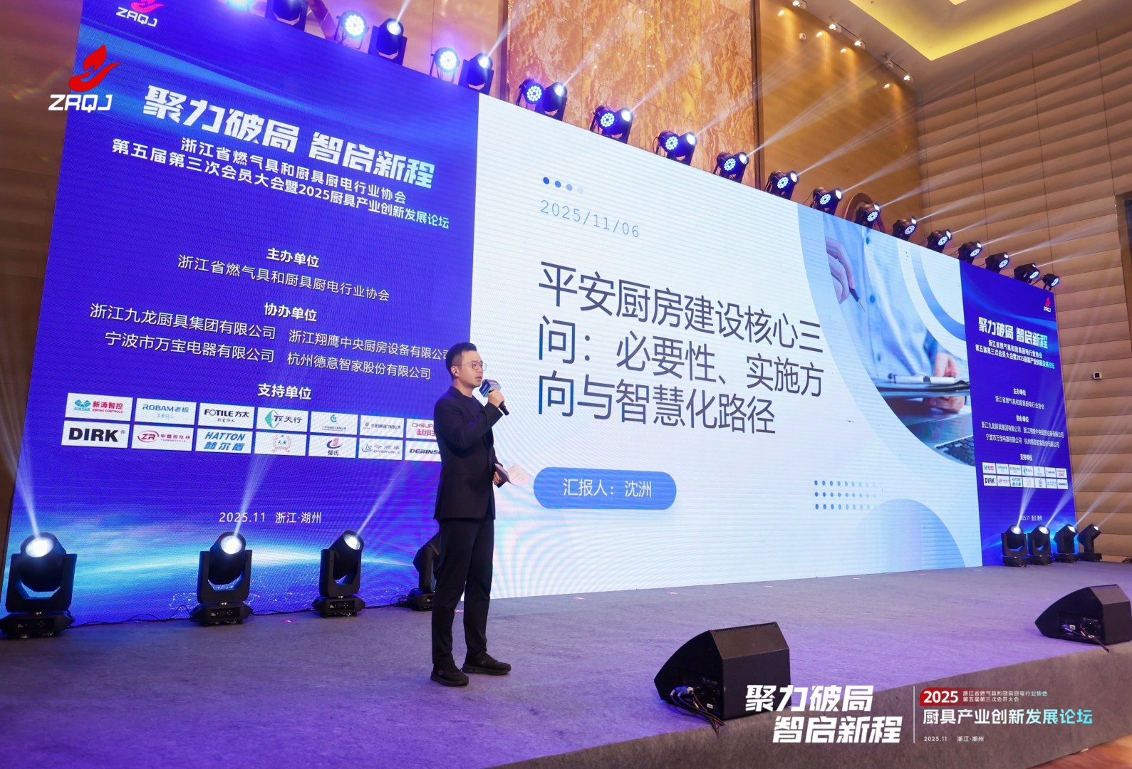 浙江九龙厨具集团总经理沈洲,以《打造 “平安商用厨房” 的路径》为主题做精彩分享。他指出,商用厨房普遍存在用火离人、燃气泄漏等安全隐患,现有安全标准分散,难以全面覆盖,无法有效满足实际安全管理需求。